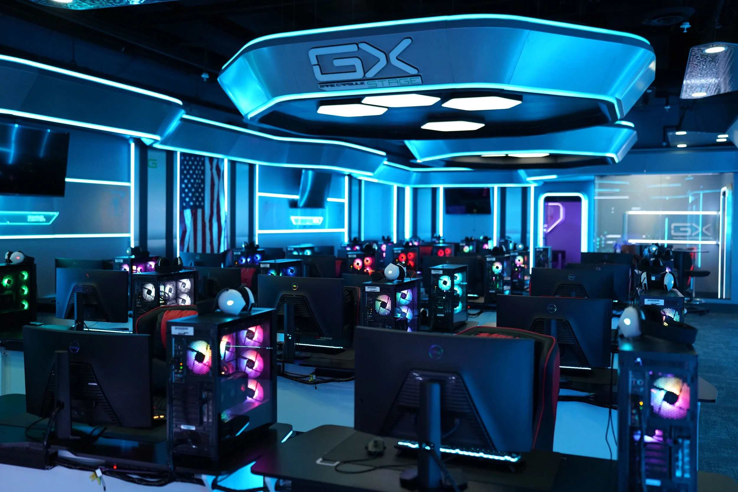 - Gaming consoles and professional recording/broadcasting booth for esports and content creation